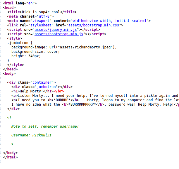 Uh oh! Looks like Morty needs to help Rick remember what his password was. Let's go ahead and pull up the source code.